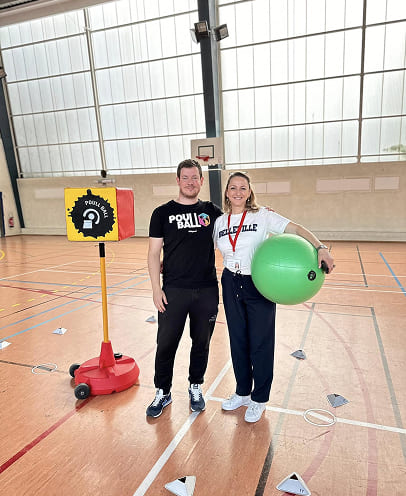 Le Poull Ball est un nouveau sport alternatif. Un jeu mixte et fair play qui se pratique à 5c/5 sur un terrain de basketball. Le but est d’employer des stratégies pour renverser une des deux cibles posées sur les socles. Un choix peut être fait pour attaquer les deux camps et ainsi surprendre ses adversaires.